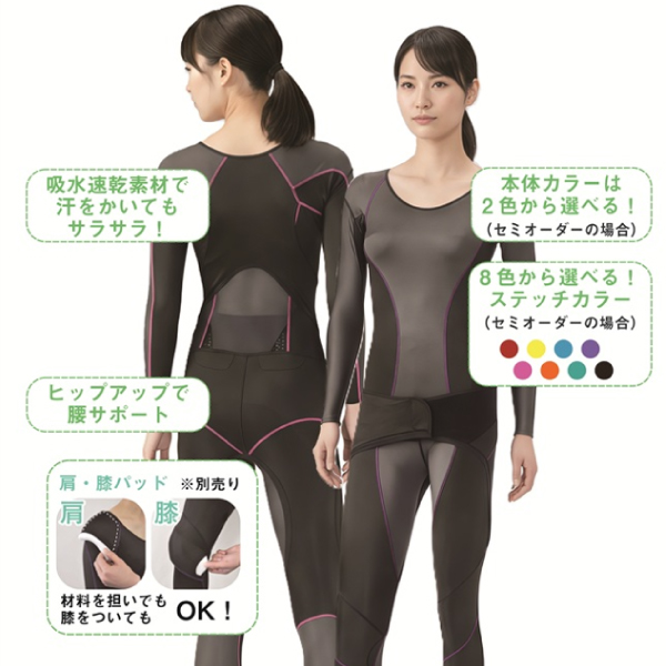 “肩”と“腰”の2つの部位に特化した2タイプで気になる部分を集中的にサポートします。伸縮性のある生地で肩や腰をしっかりとサポートします。